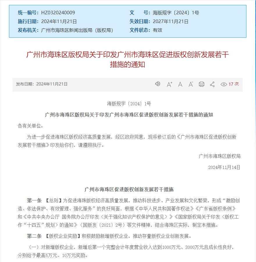 记者获悉,多年以来,广州市海珠区持续安排财政奖励资金,助推区内文化产业发展。今年6月,海珠区发布数字文娱“十条”,推出微短剧等细分赛道扶持举措,给予单一主体每年最高300万元奖励。在此之九游娱乐文化 九游app官方入口前,海珠区升级了全国首个区级版权产业专项扶持政策“海珠版权十条”至2.0版,新增版权贸易扶持条款,简化申报流程、优化奖励等级、降低准入门槛;修订游戏产业政策,鼓励研发创新,扶持精品出海。