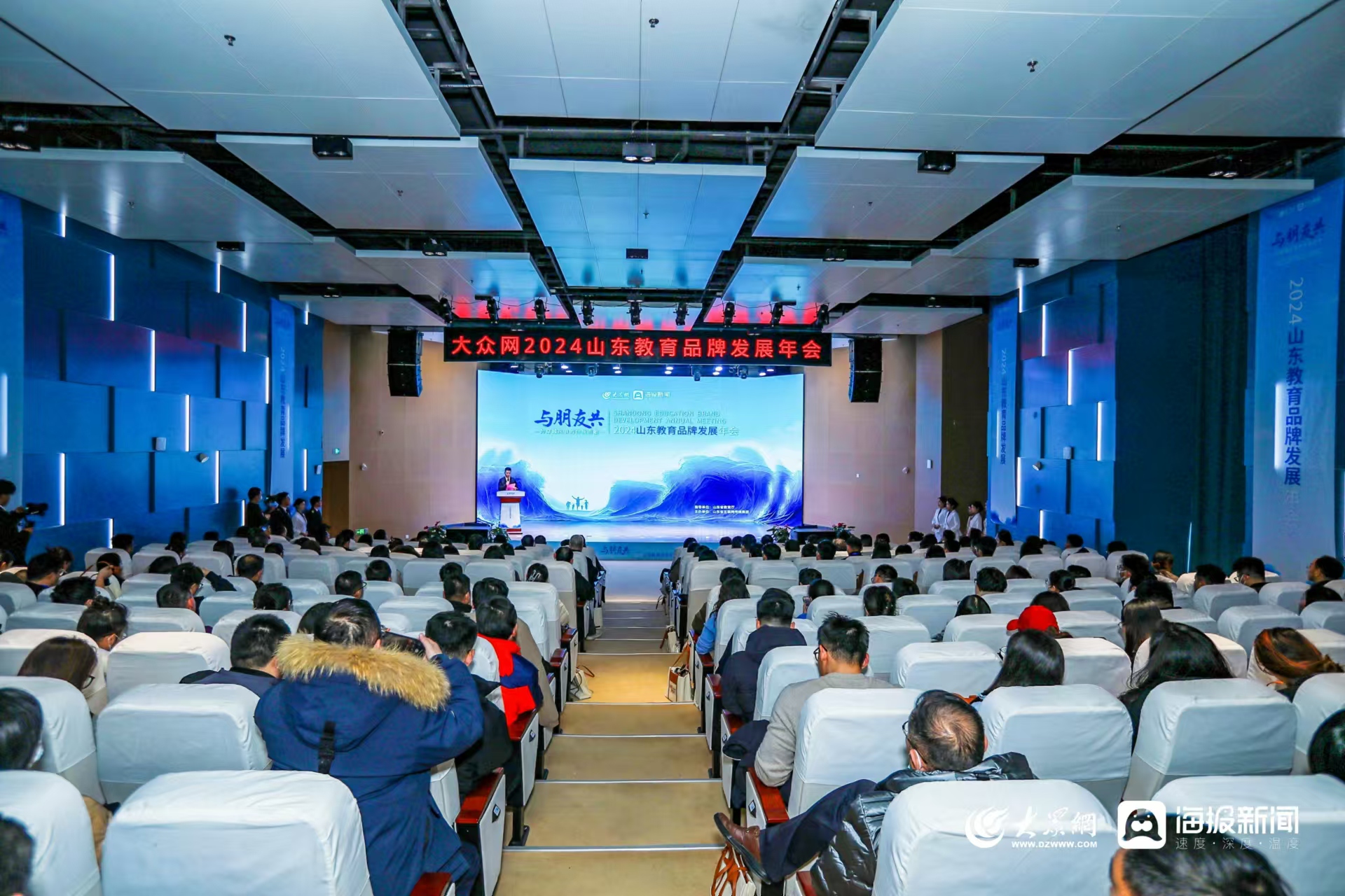 1月10日下午,由山东省教育厅指导,大众网·海报新闻主办的 “与朋友共——为穿越风浪的你我而歌” 2024山东教育品牌发展年会在青岛举办。省教育主管部门及150余所高等院校宣传工作负责人齐聚一堂,共同聚焦“山东教育品牌发展”,探讨融媒体时代的教育品牌向上生长之力与传播路径。