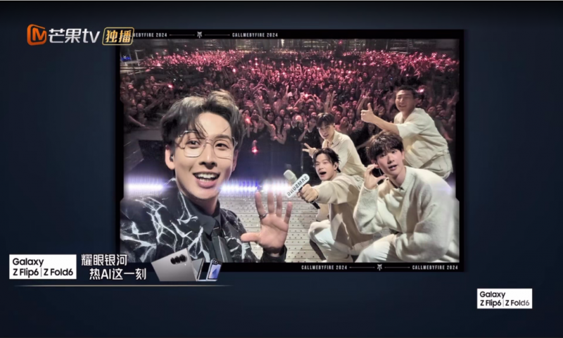 在科技产品高度同质化的今天,传统营销依赖的“参数至上”模式逐渐失效。三星与《披荆斩棘4》的深度合作,以“场景共生”为核心,将硬核科技融入节目内容。通过五场公演的“有AI火力揭晓环节”,三星将产品功能转化为仪式化体验。比如,用三星手机远程揭晓获胜部落、以9台三星Galaxy Z Fold6拼合实现动态滚屏,以及设计巨型星星装置等环节,有效消解了科技产品的冰冷感,让技术成为节目叙事的有机组成部分,与用户建立起更深的情感纽带。