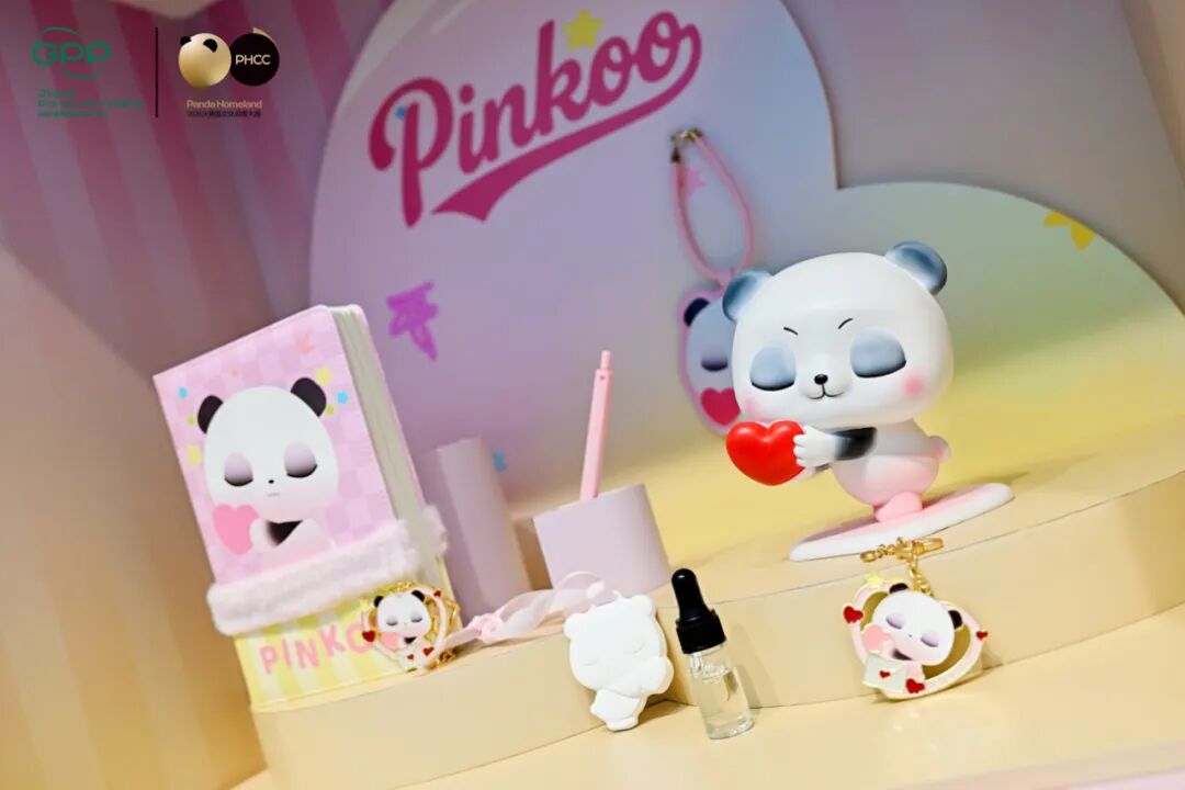 同样完成这场华丽转身的,还有成都大学中国-东盟艺术学院美术与设计学院院长张鸶鸶团队的《粉嘟嘟系列》。这个打破熊猫传统黑白配色的粉色雕塑系列,运用中国传统写意笔法和唐代仕女画的飘逸线条,塑造出独具东方美感的熊猫形象。它被孵化成八大核心IP之一的“粉嘟嘟(PinKoo)”,并迅速衍生出涵盖家居、配饰等多个品系的文创商品。