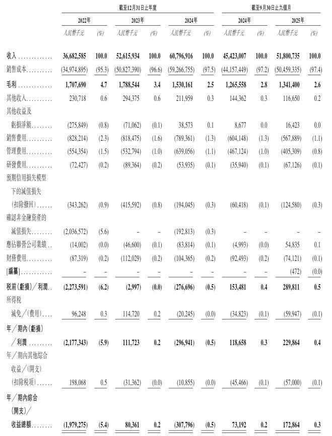 于2022年度、2023年度、2024年度、2025年截至9月30日止九个月,公司分别录得年╱期内利润约-21.77亿元、1.12亿元、-2.97亿元、2.30亿元。