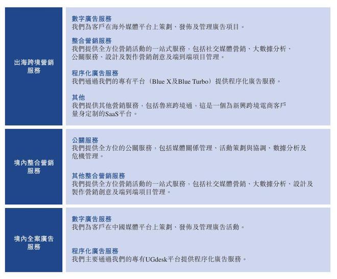 招股书显示,蓝色光标成立于1996年,专注于为不同行业的客户提供一站式技术驱动营销服务,满足客户业务生命周期的营销需求。