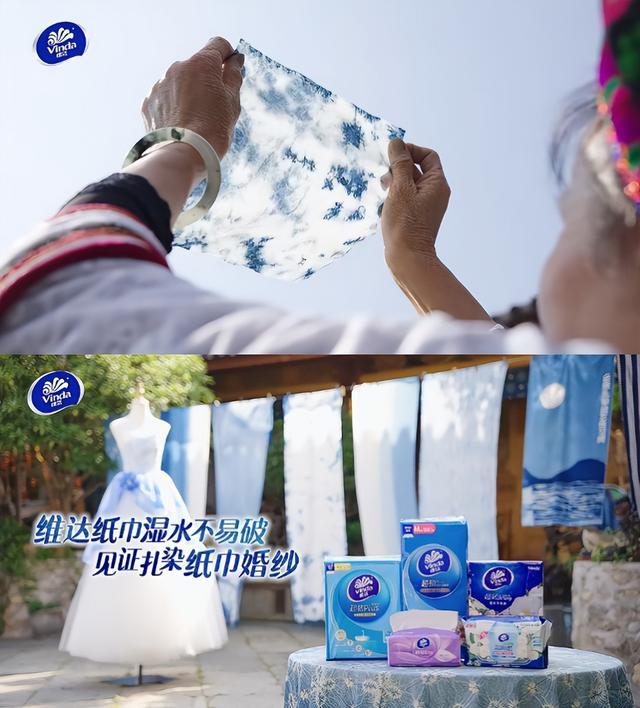 如果说IP联名是维达打开非遗视野的窗口,那么深入非遗发源地进行的深度活化实践,则体现了品牌更为宏大的叙事野心与匠心。2024年,维达携手抖音商城超级品牌日,将目光投向了云南大理周城——白族扎染技艺的千年传承地。在这里,维达完成了一次被誉为经典的跨界融合。