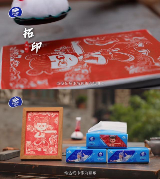 2025年5月,维达再度创新,携手动画IP“哪吒”,将另一项古老技艺——非遗拓印推至台前。通过将拓印技艺与中国传统神话结合,维达不仅让沉寂的古老技艺焕发出新时代的活力,更借助亲子互动拓印体验,让“韧性”的品牌理念与“坚韧不拔”的文化精神在家庭场景中悄然传递。