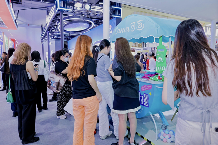在服贸会现场,Canva可画与科技公司Sencity携手带来AI+创意+可持续的沉浸式体验。展区设置了AI拍照互动、TetraBIN智能垃圾桶环保装置以及“设计能量站”创意体验区,不仅让参观者直观感受到AI技术如何简化设计流程、提升创作效率,还通过绿色互动与日常创作模拟,展示了Canva可画的AI工具如何与实际生活、可持续理念相结合。这些展示将“看不见的AI服务”转化为可感知、可体验的场景,让观众在互动中理解Canva可画在服务贸易中的多元应用价值。