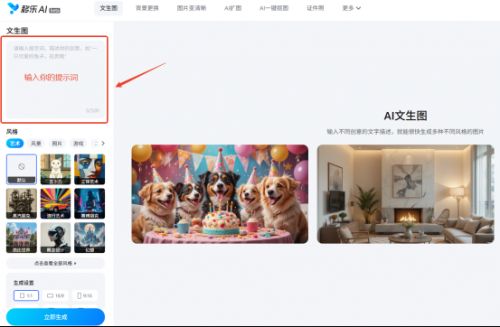 4、操作逻辑简单。移乐AI文生图的界面是全中文的,没有任何复杂按钮,流程只有三步:第一步输入文字描述,第二步选风格,第三步点击生成。就算是完全没接触过AI文生图的新手,跟着指引1分钟就能学会。