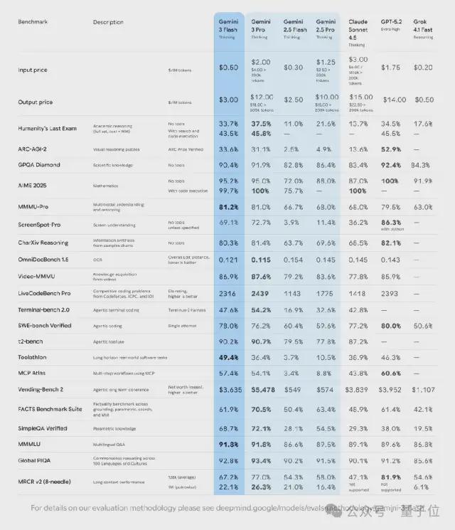 随后,谷歌推出了Gemini 3 Flash,它融合了Gemini 3的专业级推理能力与Flash级别的延迟、效率和成本优势,使其成为同尺寸下性能最佳的模型。