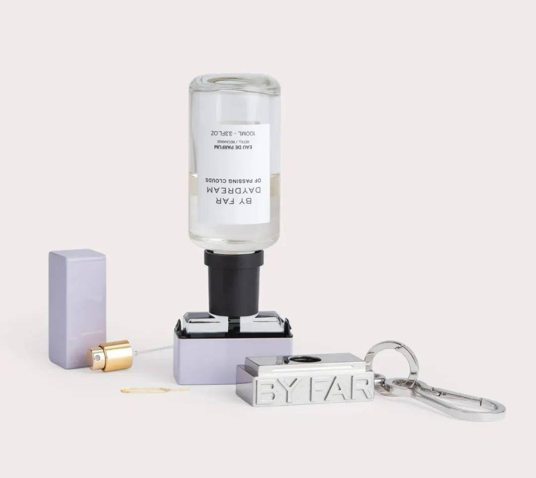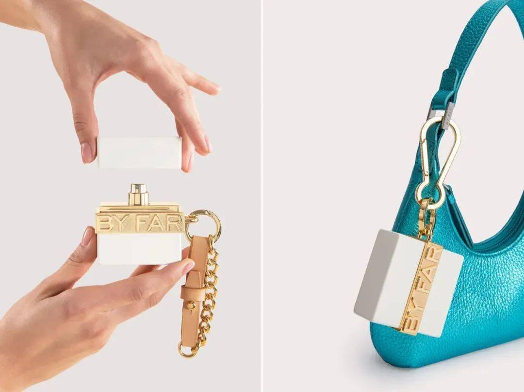英国设计团队VV CREATIVE为香水品牌BY FAR设计了一款好看又好用的香水包装,首先考虑到消费者出门随身携带香水的这个需求,于是将Daydream 这个系列的香水设计成了时髦的挂饰,吸睛又新奇。