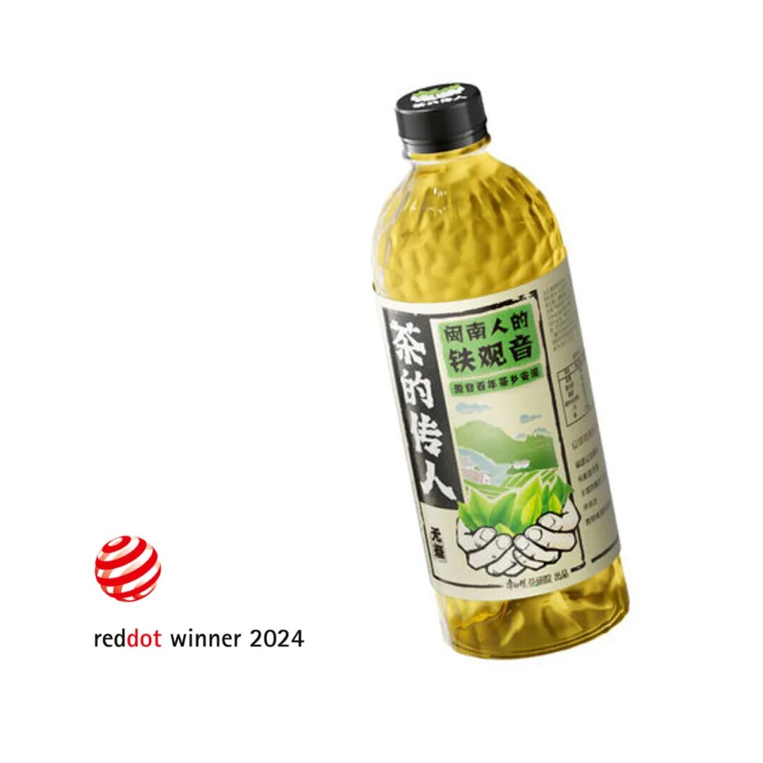 瓶身设计采用专利锤纹瓶型,标签采用云南甲马版画风格,仿纸材质的手作触感,从内到外都彰显着质朴和用心。以其独特的东方审美,茶的传人包装设计荣膺德国红点奖。
