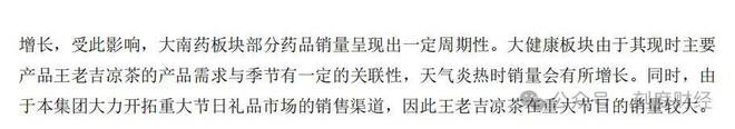 即以百年品牌积淀获得更多消费者,以全渠道网络保障市场覆盖,以王老吉大健康、王老吉药业两大主体及区域基地保障供应,这种生态优势使得该板块持续增长。
