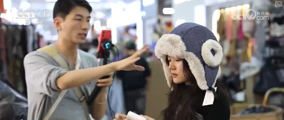 经营户黄梦菲手中的这款纯手工编织帽就是2025年店里的爆款,因为这款帽子是需要手工编织的,制作起来比较慢,所以目前市场上是供不应求的状态。