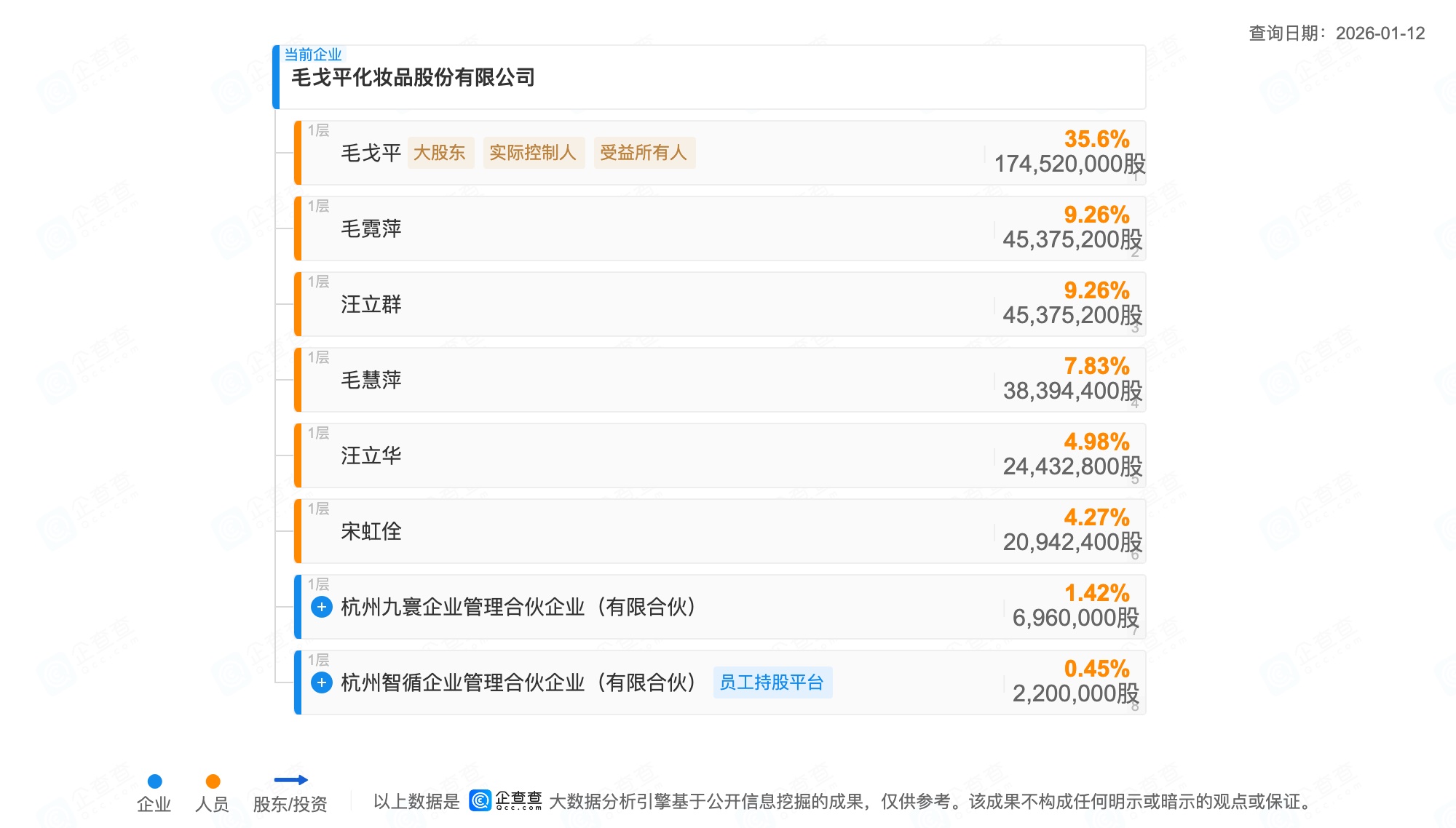 毛戈平是典型的“家族企业”:9名董事中,6名执行董事分别是创始人毛戈平、其配偶汪立群、两位姐姐毛霓萍和毛慧萍、妻弟汪立华,以及被视为“家族编外成员”的元老高管宋虹佺。公司的战略决策、财务分配、人事任命,几乎完全由一个家族说了算。