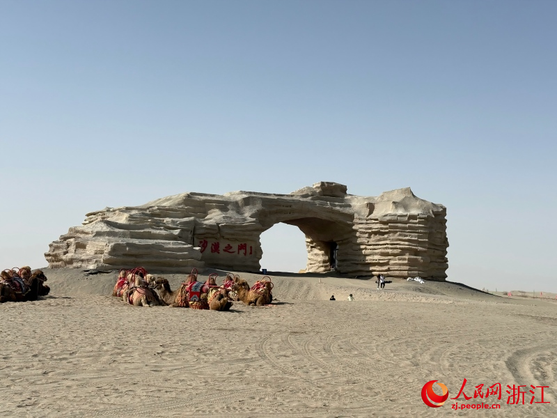 2023年,浙江援疆“双珠”计划启动,沙漠之门的建设“一年翻一个样”。景区负责人张培荣见证了援疆资金带来的巨变:游客中心功能完善,驼铃泉建成泳池和儿童戏水区,游客停留时间从一小时拉长到半天;商户区盘活闲置资产,火车餐厅、烧烤、咖啡一应俱全。